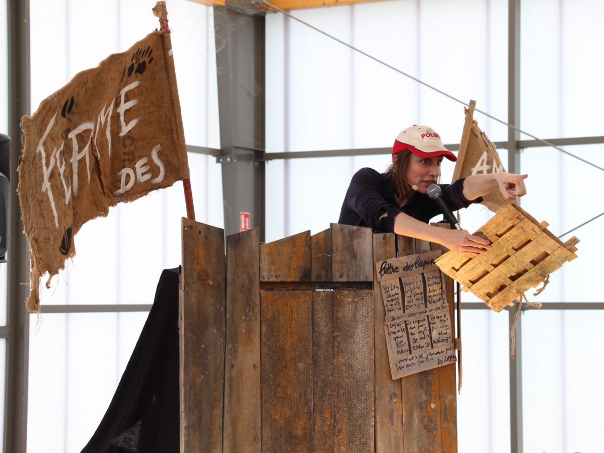La Ferme des animaux est un spectacle musical tout public dès 7 ans, qui a la particularité d’être interactif : les jeunes spectateurs peuvent changer le cours de l’histoire, et plusieurs fins sont possibles. Ils font ainsi l’expérience des choix collectifs par une expérimentation ludique et artistique. Le jeu de rôle est au cœur de ce spectacle interactif, au cours duquel les enfants participent à la fiction et interprètent des personnages, selon un scénario aux multiples fins rythmé par un maître du jeu. Les enfants réagissent aux événements au cours de l’histoire, discutent, font des choix, et créent des micro-sociétés à partir de leurs décisions collectives !