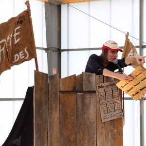 En complément des représentations du 16 au 18 mai 2024, des ateliers jeu de rôles adapté à l’âge des participant ont été proposés à des classes et des jeunes, Ils abordent, par l’intermédiaire de la fiction, les enjeux de l’organisation et de la prise de décisions collectives. Deux artistes en sont les maîtres du jeu. Le jeu permet aux enfants d’interpréter des personnages issus du monde de La Ferme des animaux et de s’exercer à la prise de parole improvisée.